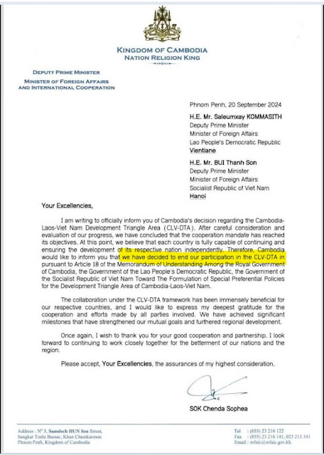 (ភ្ជាប់៖ លិខិតក្រសួងការបរទេសកម្ពុជា និង កិច្ចព្រមព្រៀង CLV-DTA)